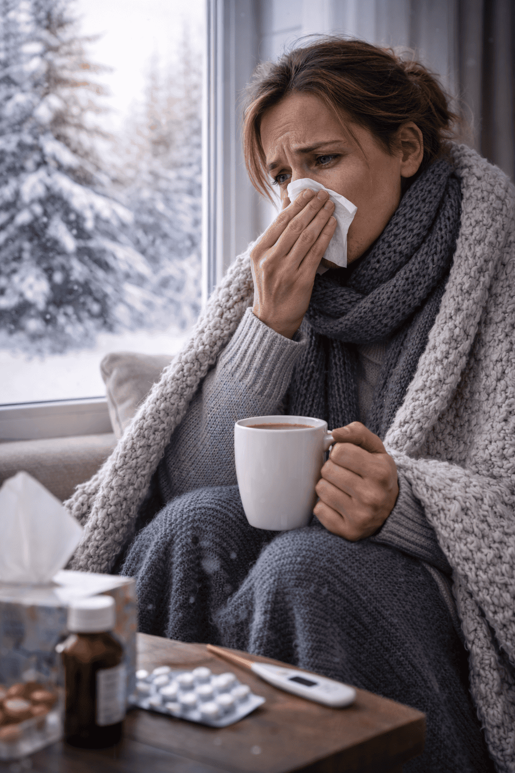 Chlad představuje další energetický stresor. Zvýšená termogeneze, zejména u jedinců s nižší fyzickou aktivitou, znamená vyšší nároky na oxidativní metabolismus. Pokud se k tomu přidají respirační infekce nebo rekonvalescence po nemoci, dochází ke kombinované zátěži: energie je potřeba nejen na běžný provoz, ale i na imunitní odpověď a obnovu poškozených tkání. Právě v těchto situacích se často objevuje přetrvávající únava, pocit „vybitých baterek“ a pomalejší návrat vitality.